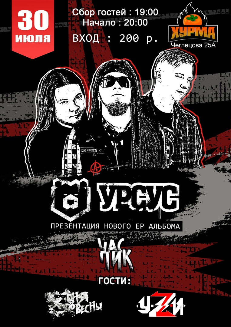 30 июля в [club171913535|творческом пространстве «ХУРМА»] состоится большая и громкая презентация нового EP альбома группы УРСУС «Час пик».